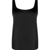 From a stylist’s perspective, this top works best as a neutral base for experimenting with textures. Pair it with structured suiting fabrics, soft wool, or smooth leather to create depth within an outfit. Worn under an elongated blazer, it forms a clean professional look. Styled with wide-leg trousers or a fluid skirt, it creates a relaxed yet refined silhouette. During warmer seasons, the black top can also stand on its own, beautifully complementing sun-kissed skin and minimalist jewelry.
