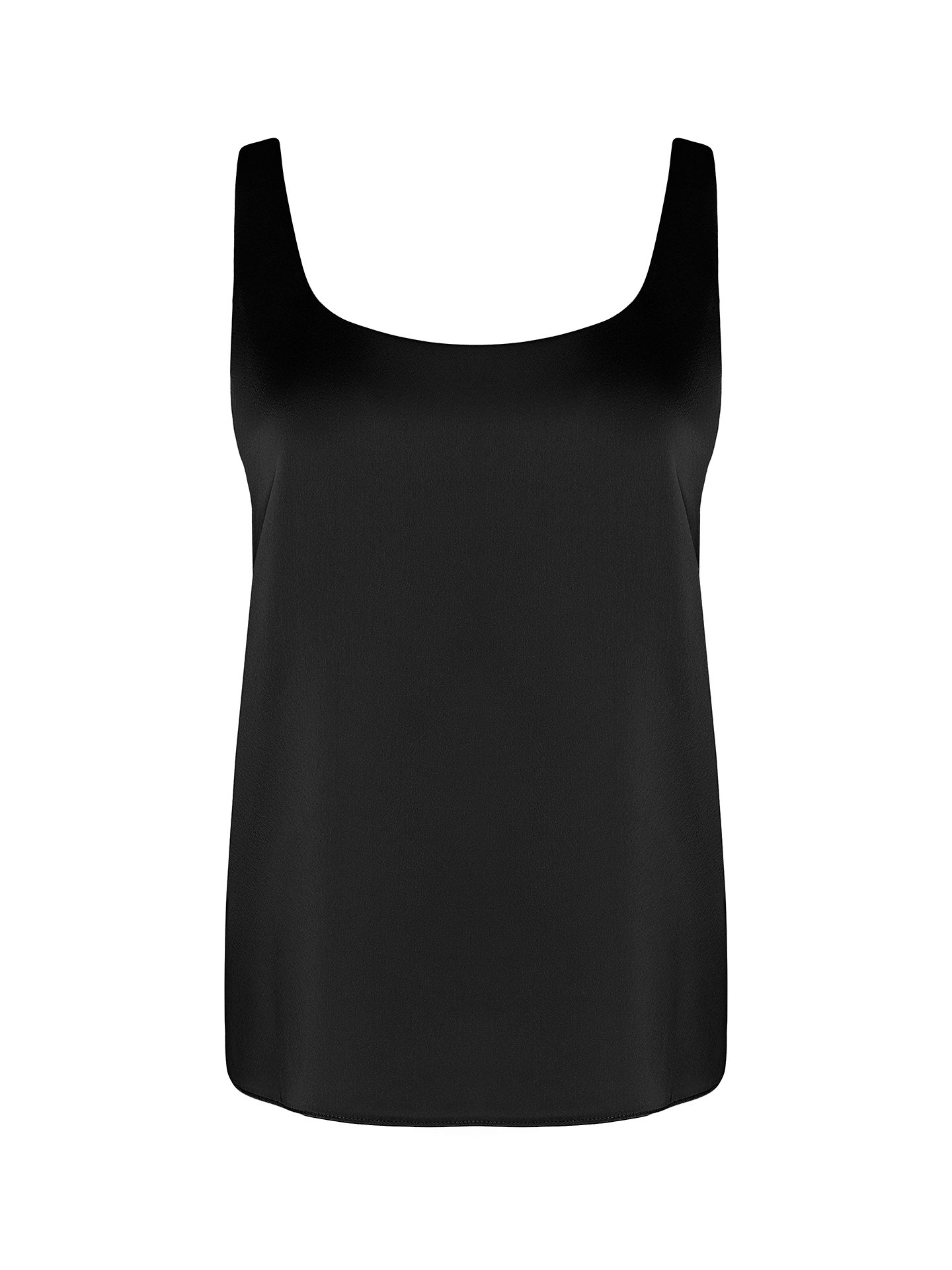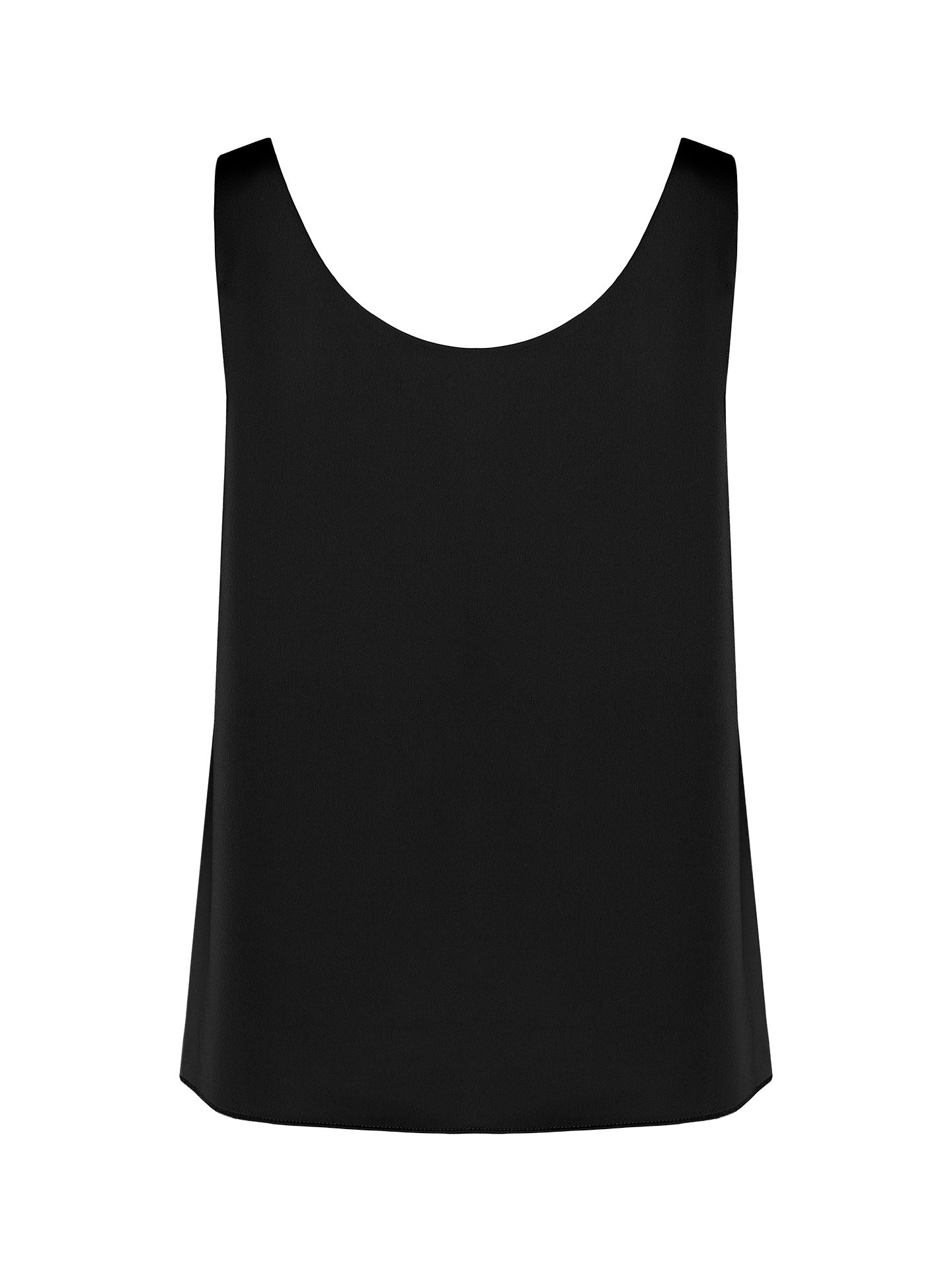 The carefully designed U-shaped neckline reveals the collarbones and neckline in a graceful way, forming a refined vertical line that enhances the overall silhouette. The cut is balanced to follow natural body proportions without feeling overly fitted. As a result, the black top feels equally appropriate in a structured office outfit or in relaxed city styling, always maintaining a polished appearance.