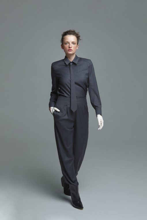 Dark gray women’s shirt in suiting fabric – graphic clarity of the silhouette