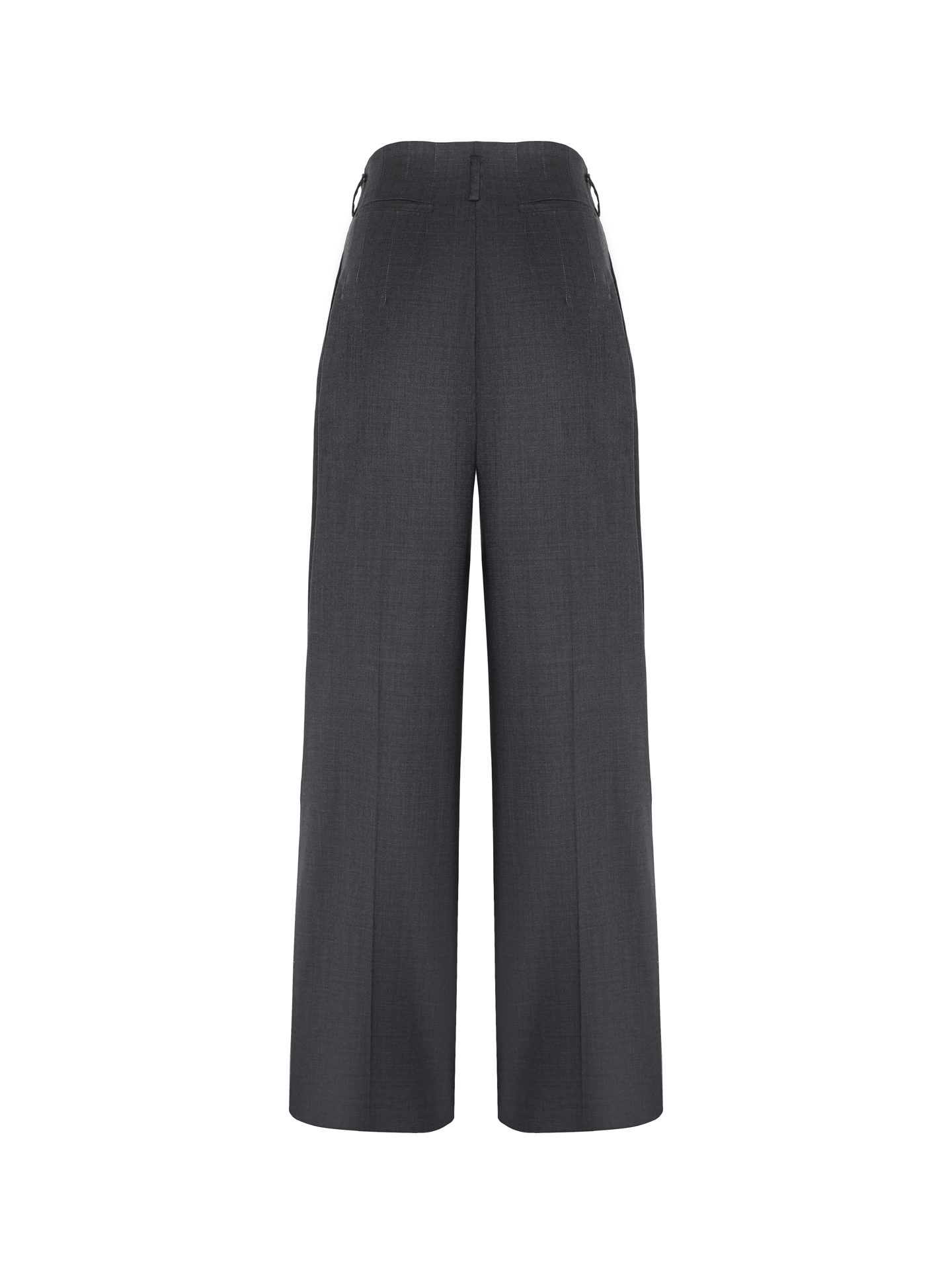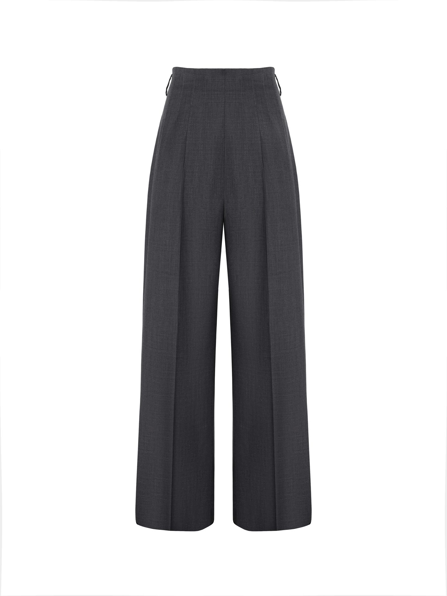 The dark gray women’s trousers create a clean, balanced silhouette that fits effortlessly into a contemporary wardrobe. The deep gray tone feels elegant and versatile, while the straight cut forms a neat vertical line. A high-rise waist defines the waistline and helps build a composed, well-proportioned look suitable for both professional and everyday styling.