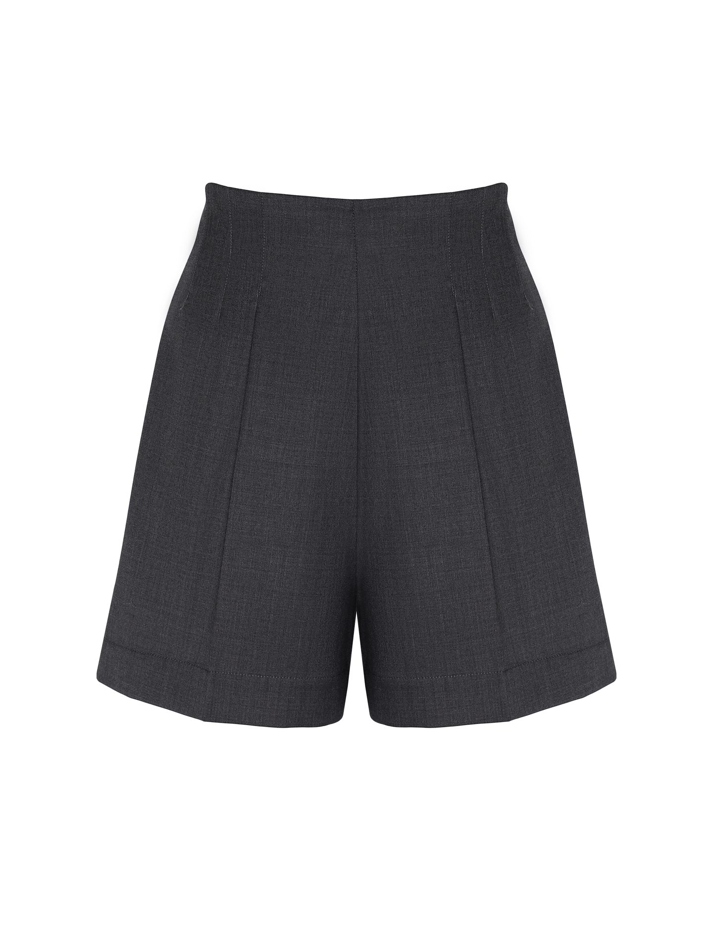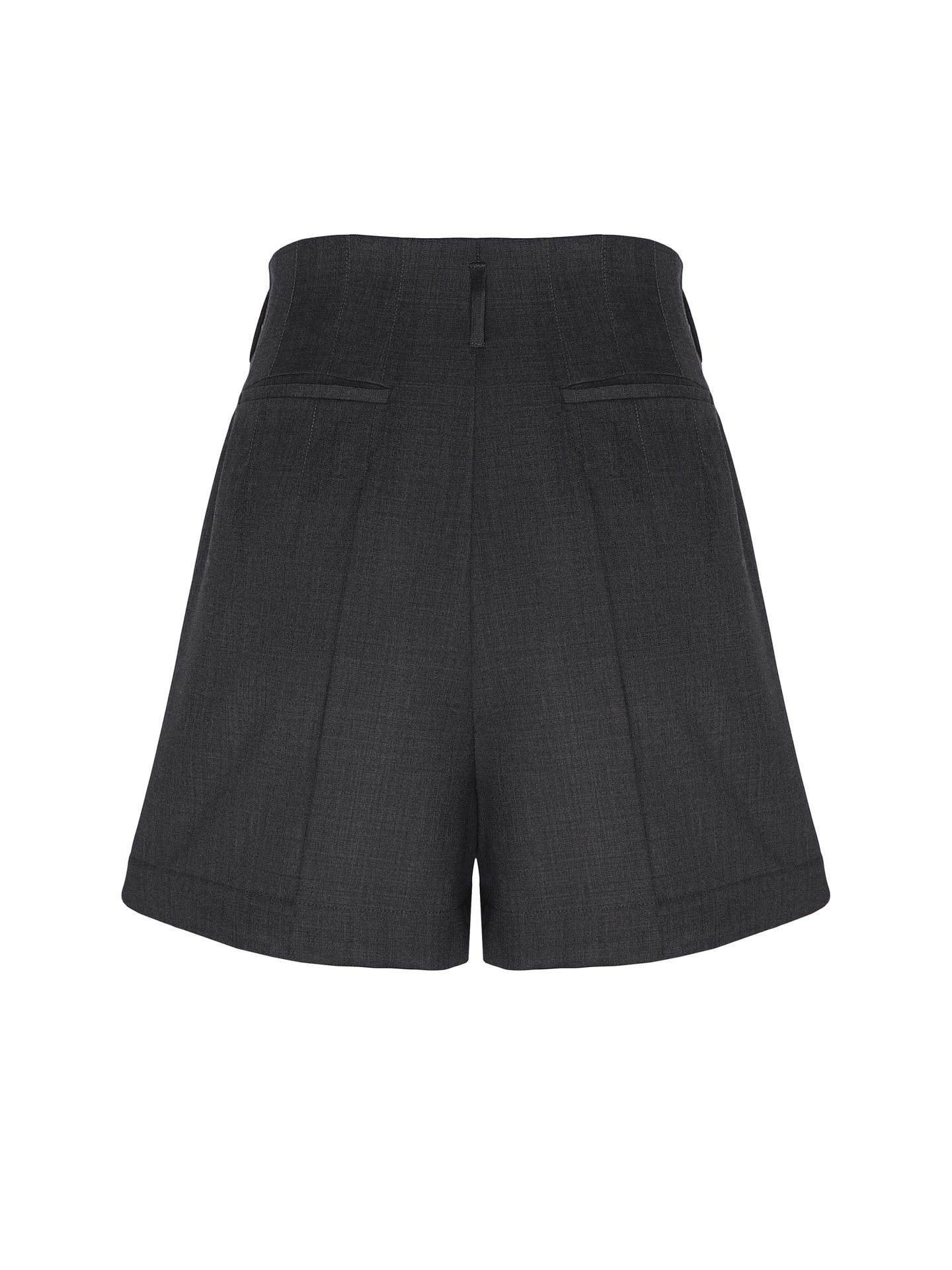 Dark gray tailored shorts create a sense of structure and confident style even in minimalist looks. The deep gray shade adds a touch of understated elegance, while the high waist elongates the silhouette and enhances proportions. Dark gray tailored shorts integrate effortlessly into an urban wardrobe, looking appropriate in both business and casual combinations.