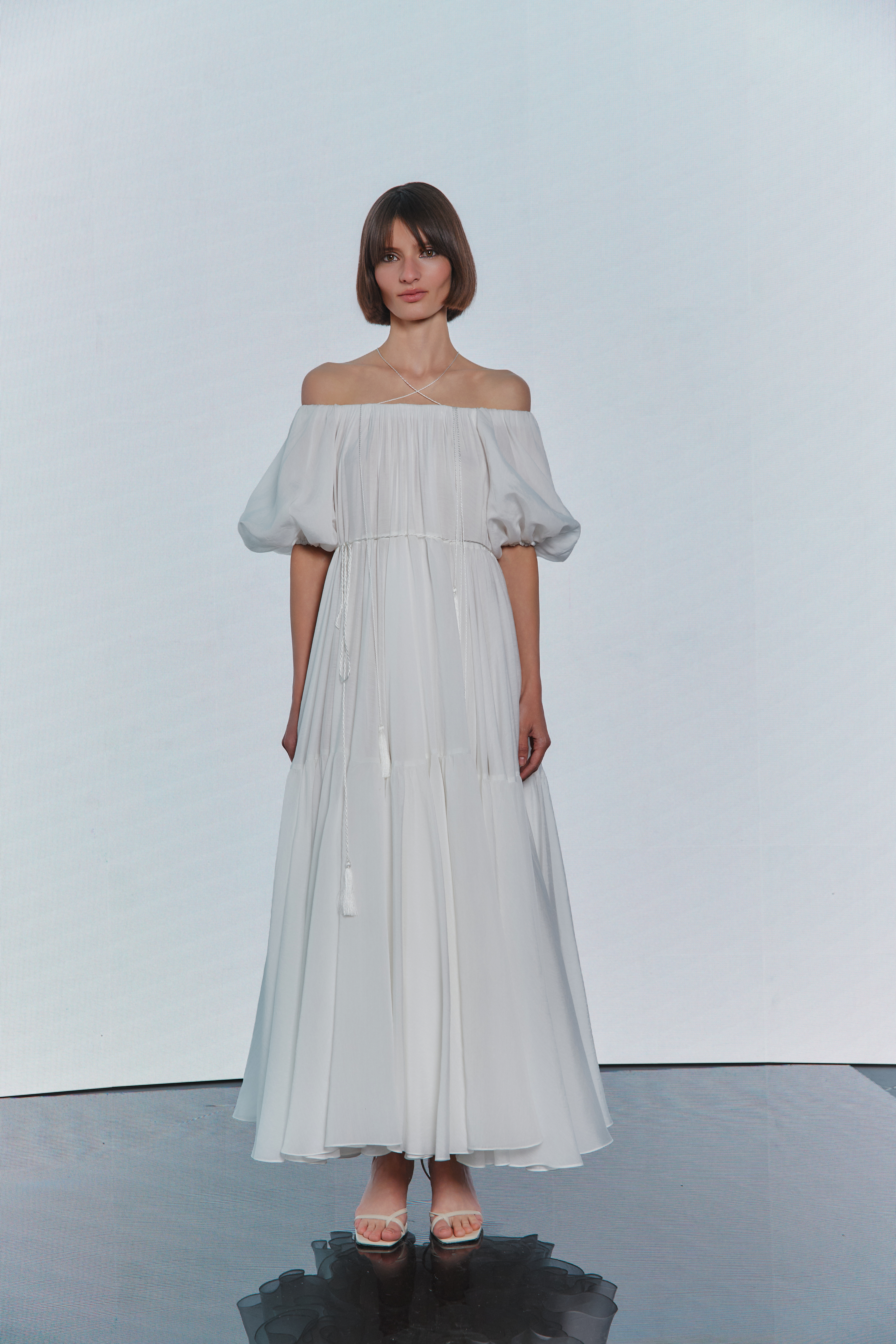 Батистова сукня з відкритими плечима — ніжність, легкість і романтичний акцент