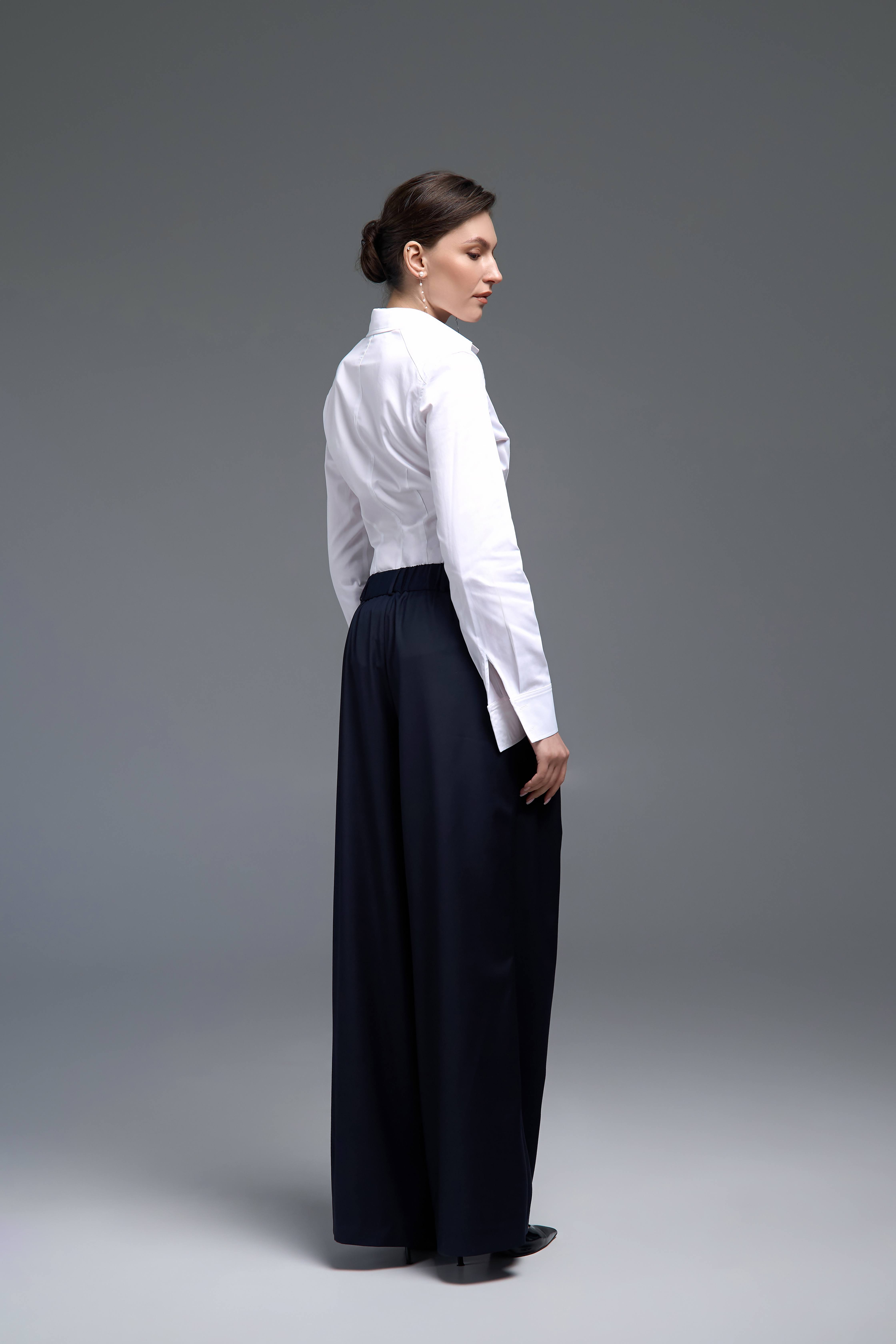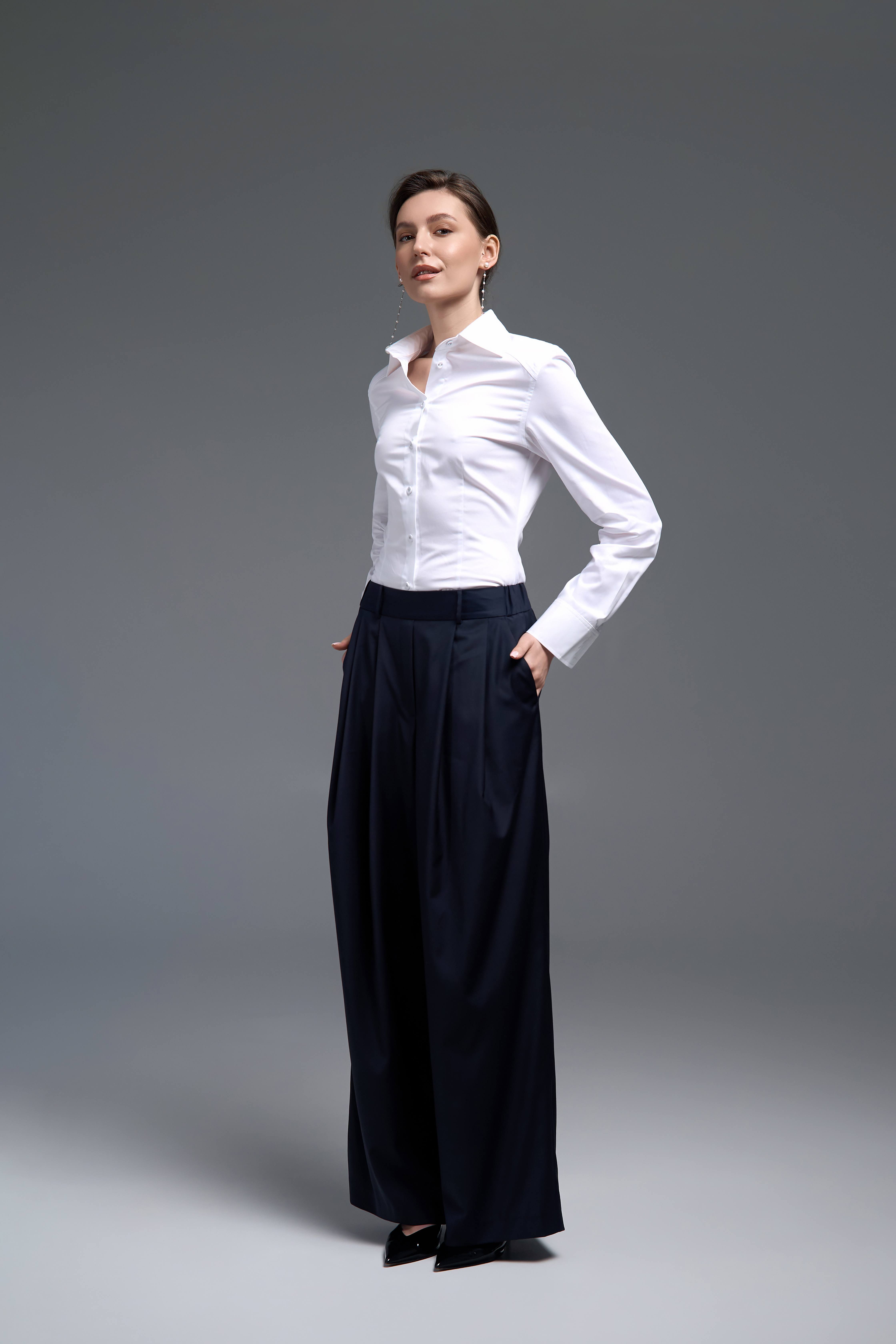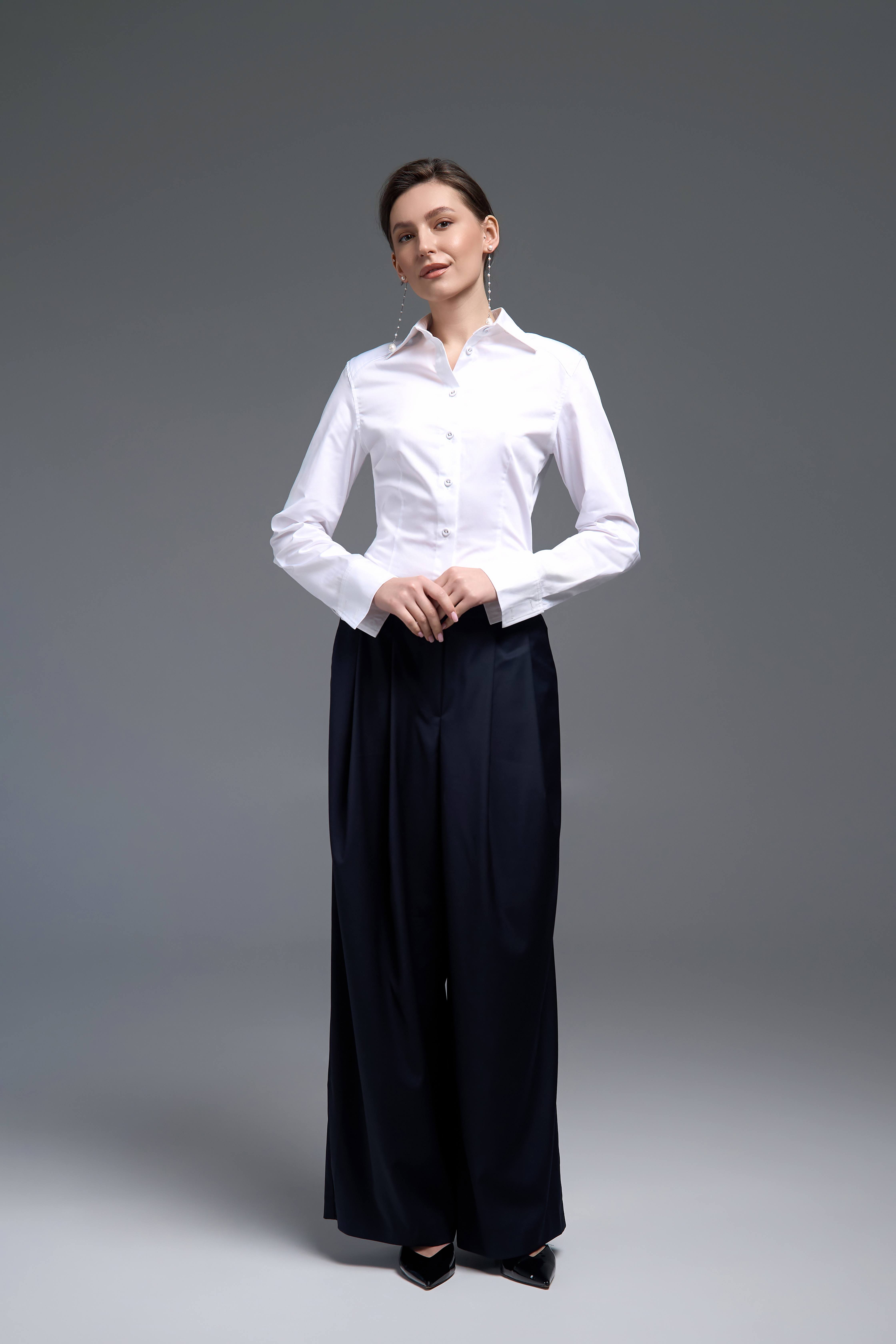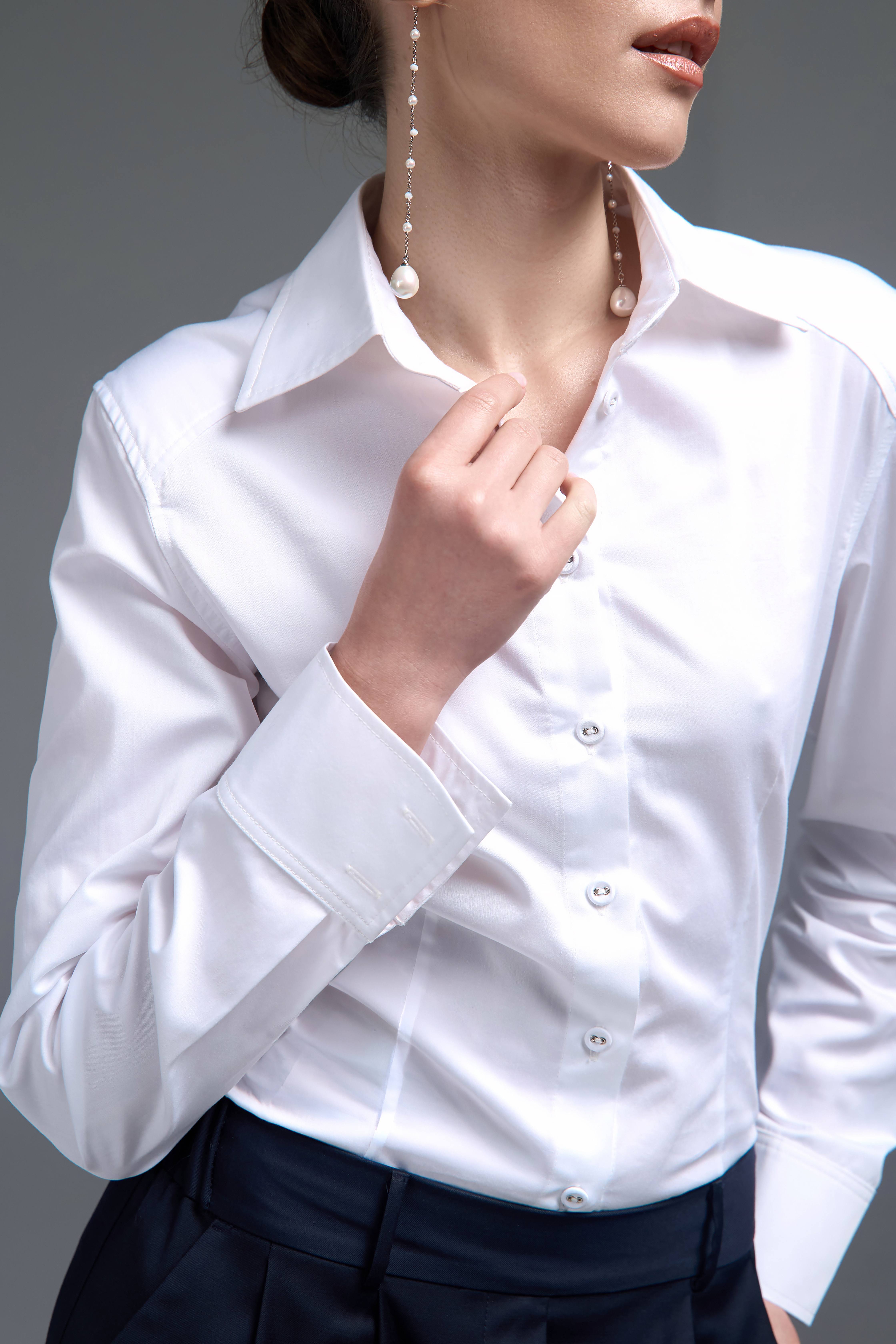 Білий колір відкриває широкі можливості для стилізації. Сорочка легко поєднується з класичними брюками, спідницями, костюмами або денімом. Вона доречна як у ділових образах, так і в більш розслаблених повсякденних стилізаціях.