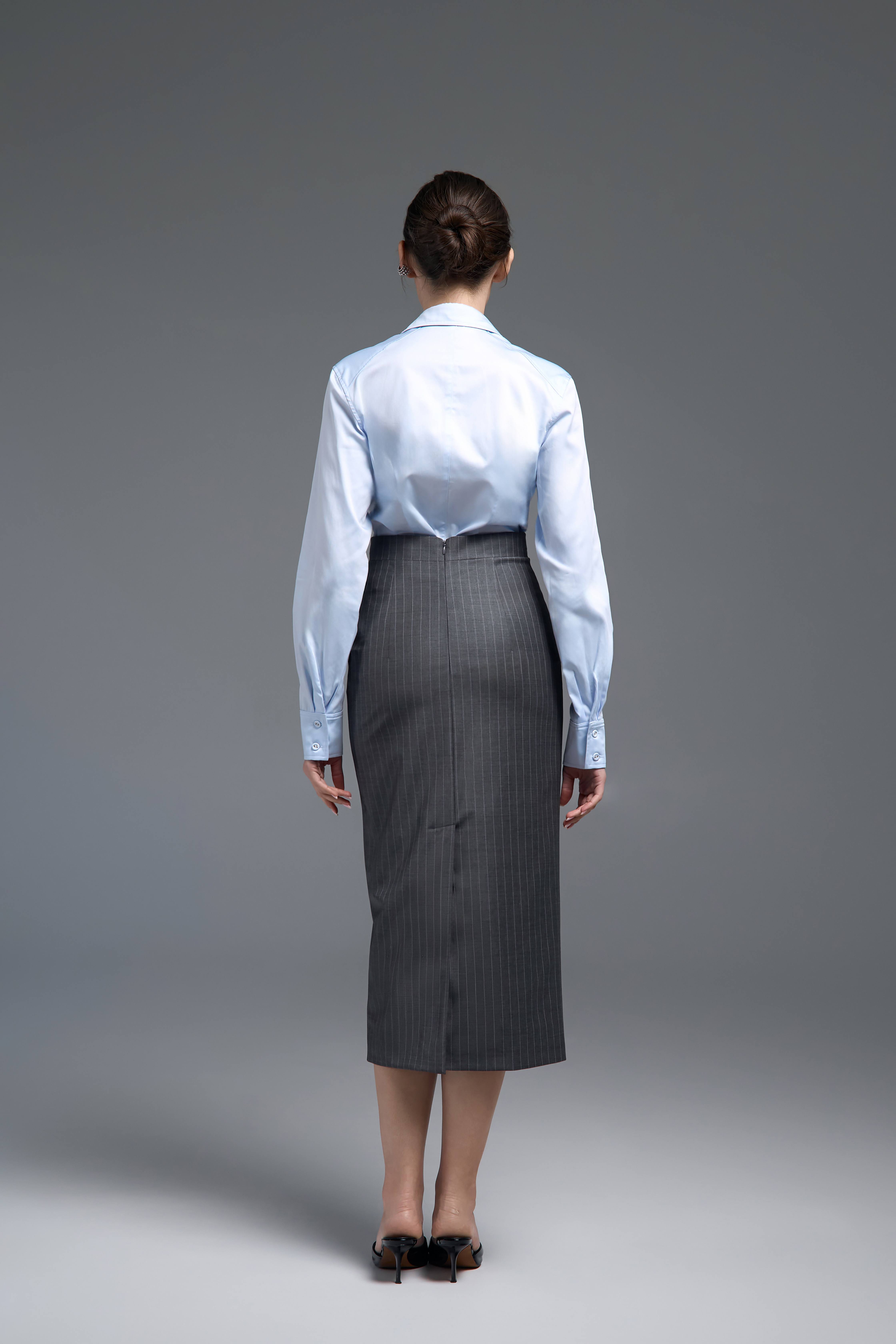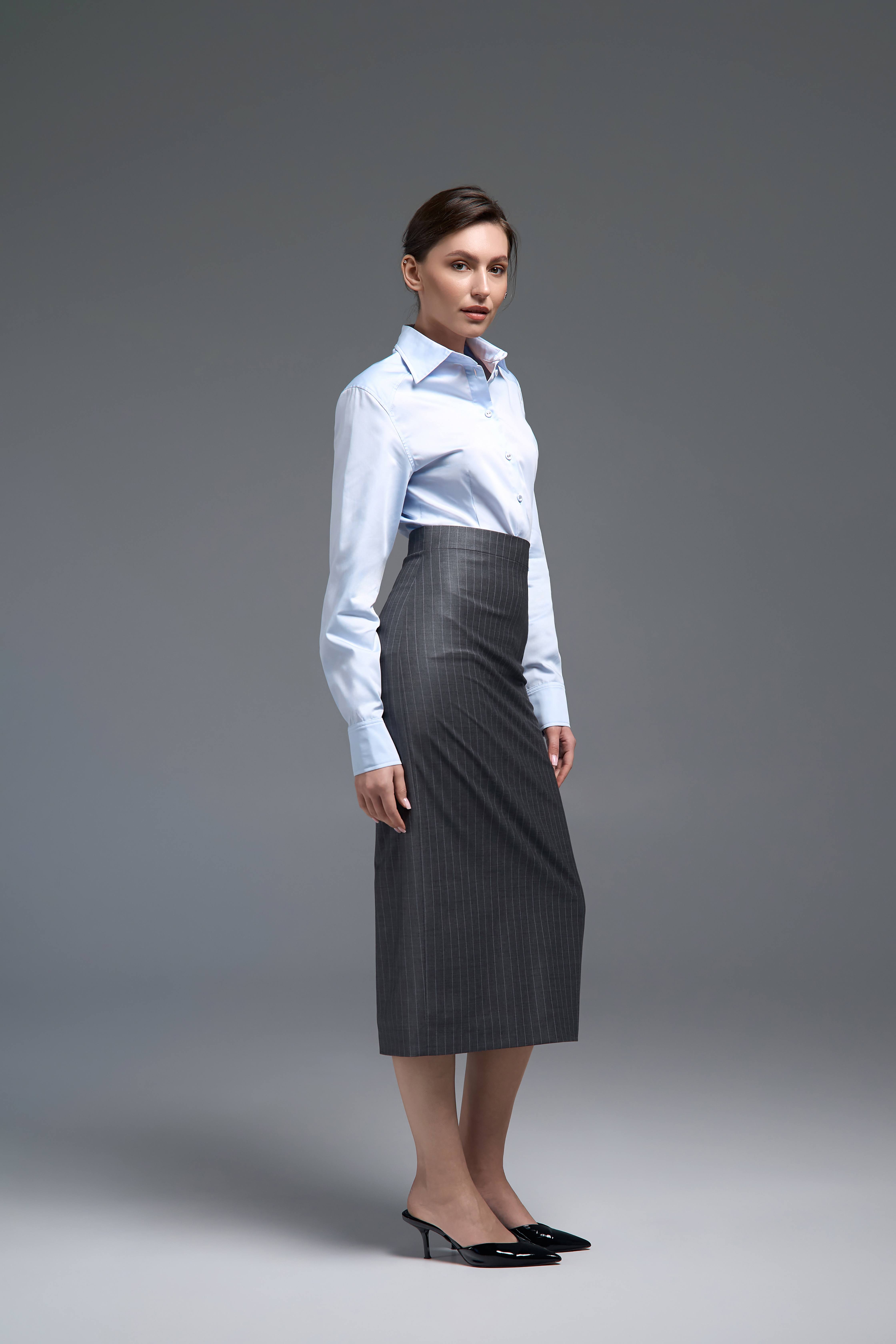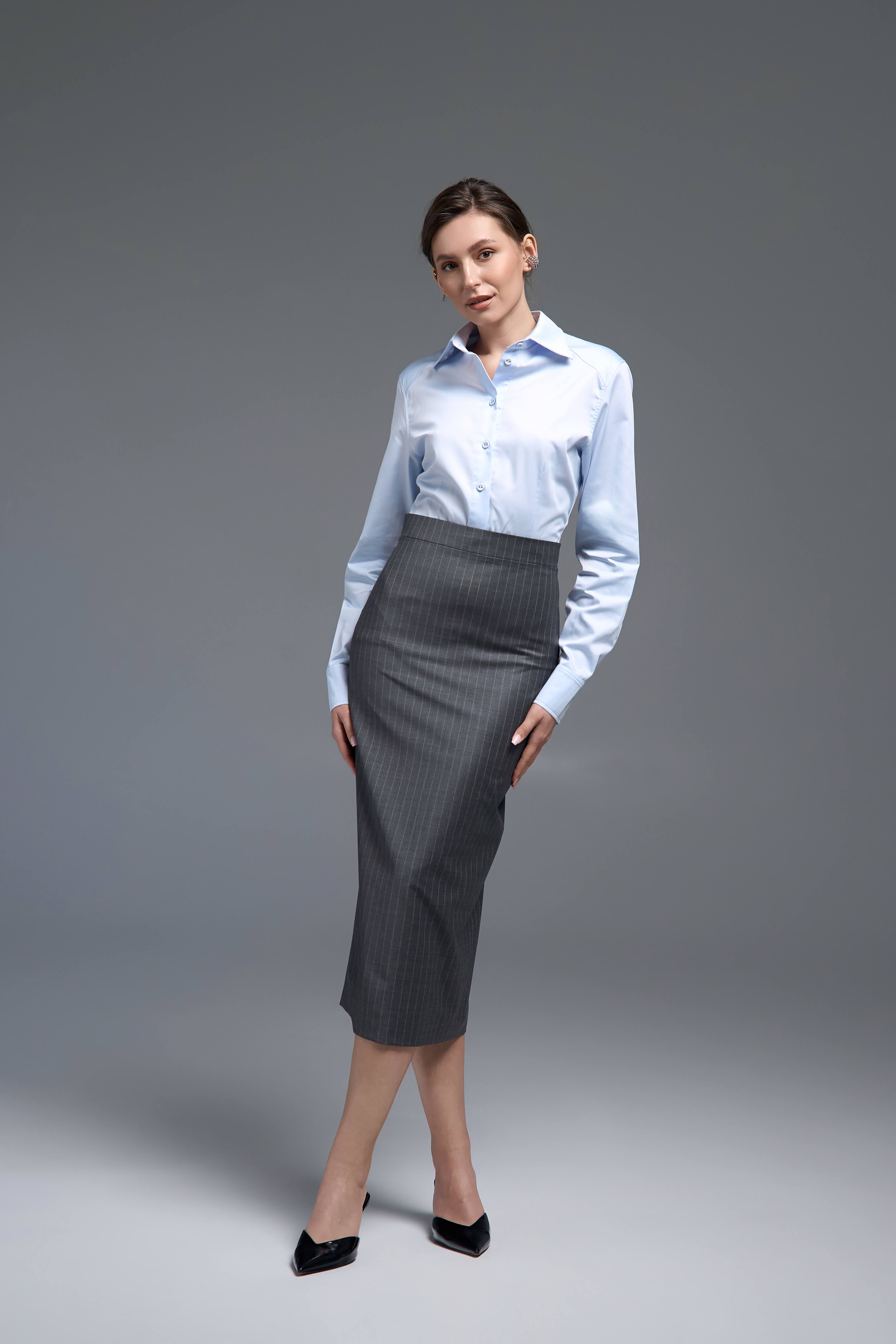 Блакитний відтінок додає свіжості та легко поєднується з базовими кольорами гардероба. Модель також доступна у білому кольорі, що розширює можливості стилізації. Сорочку можна носити з класичними брюками, спідницями або денімом, створюючи як ділові, так і більш розслаблені образи.