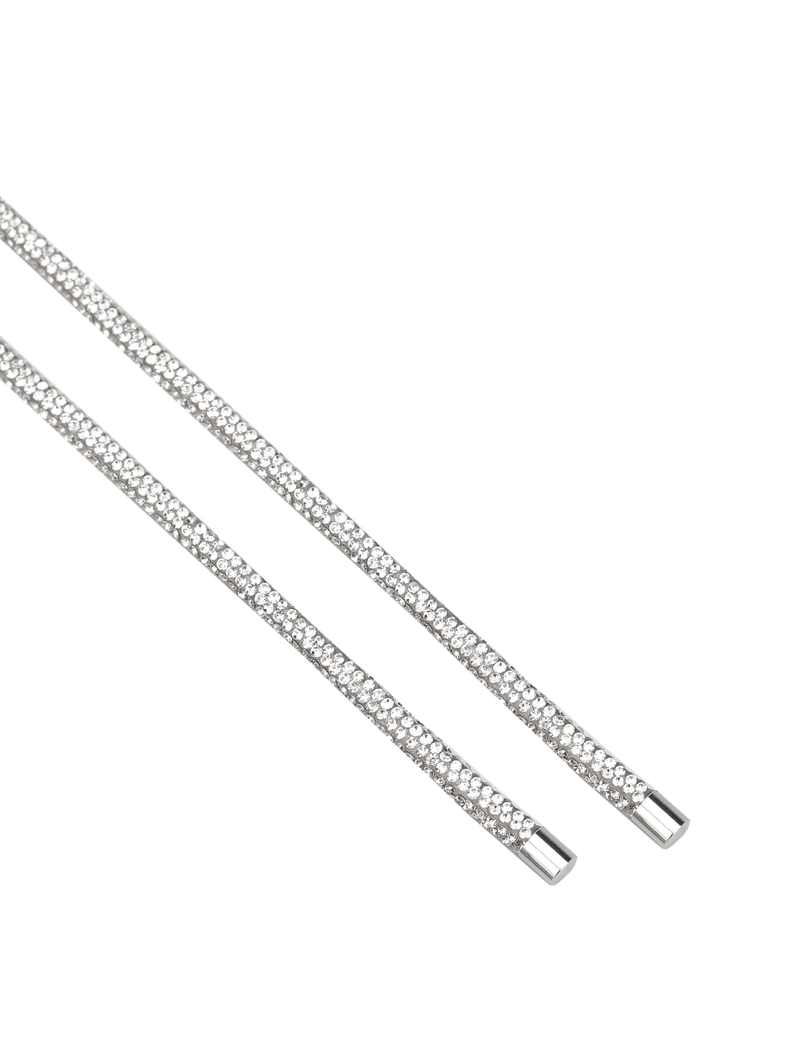 Стразовий пояс-шнур має округлу форму діаметром 6 мм та довжиною 2 м — цього достатньо, щоб зав’язувати його у різні способи: у вузол, бант, обмотуючи талію чи використовуючи як декор у зачісці. Сріблясті наконечники підкреслюють лінію шнура, додаючи йому вагомості та елегантного блиску. Завдяки щільному плетінню він не перекручується, добре тримає форму та не втрачає вигляд із часом.