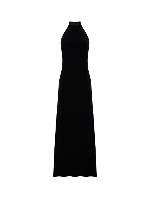 Оксамитна сукня максі створена для моментів, коли хочеться відчути справжню розкіш у найделікатнішому втіленні. Глибокий чорний оксамит огортає силует, відбиваючи світло м’яким благородним блиском. Подовжений крій додає образу драматичності та грації, а м’яка тканина підкреслює лінії тіла, зберігаючи природність і комфорт. Відкрита спина надає сукні спокусливого акценту, тоді як довгий шарф-комір «халтер» створює відчуття завершеності та вишуканого стилю. Ця оксамитна сукня максі ідеально пасує для вечірніх виходів, урочистих подій і моментів, коли важливо виглядати бездоганно.