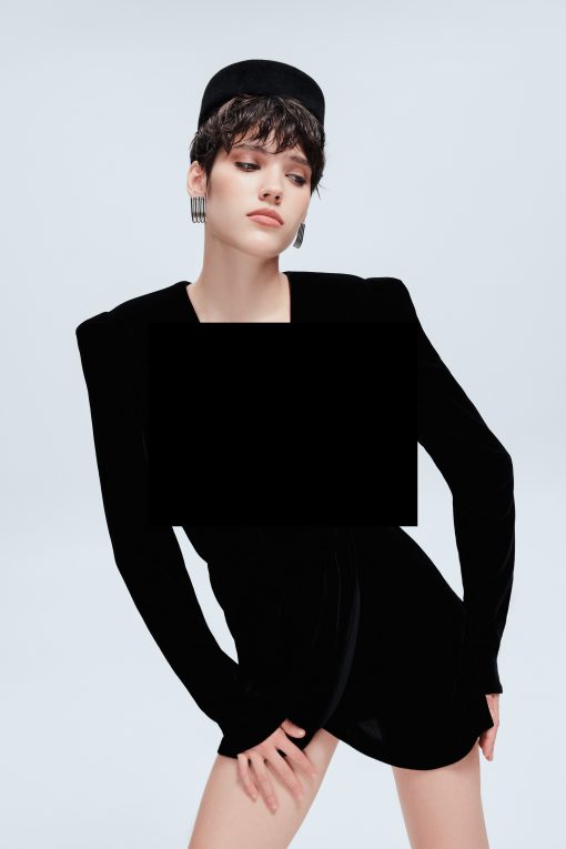 Сукня міні з підплечниками — це модний акцент сезону, який поєднує впевненість, стиль і жіночність. Створена з м’якого чорного оксамиту, вона виглядає розкішно завдяки глибокому відтінку та делікатному блиску тканини. Приталений крій з еластичною талією підкреслює природні лінії фігури, забезпечуючи комфорт і бездоганну посадку. Довжина міні додає образу динамічності, а стримана форма робить модель універсальною для вечірніх виходів, урочистих подій або стильних міських образів.
