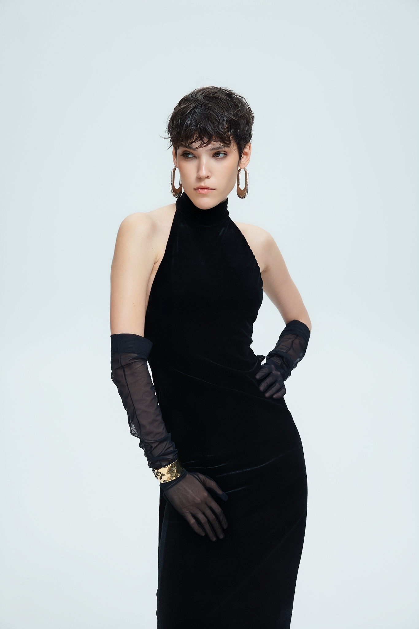 Високі чорні рукавички — акцент, що робить образ завершеним