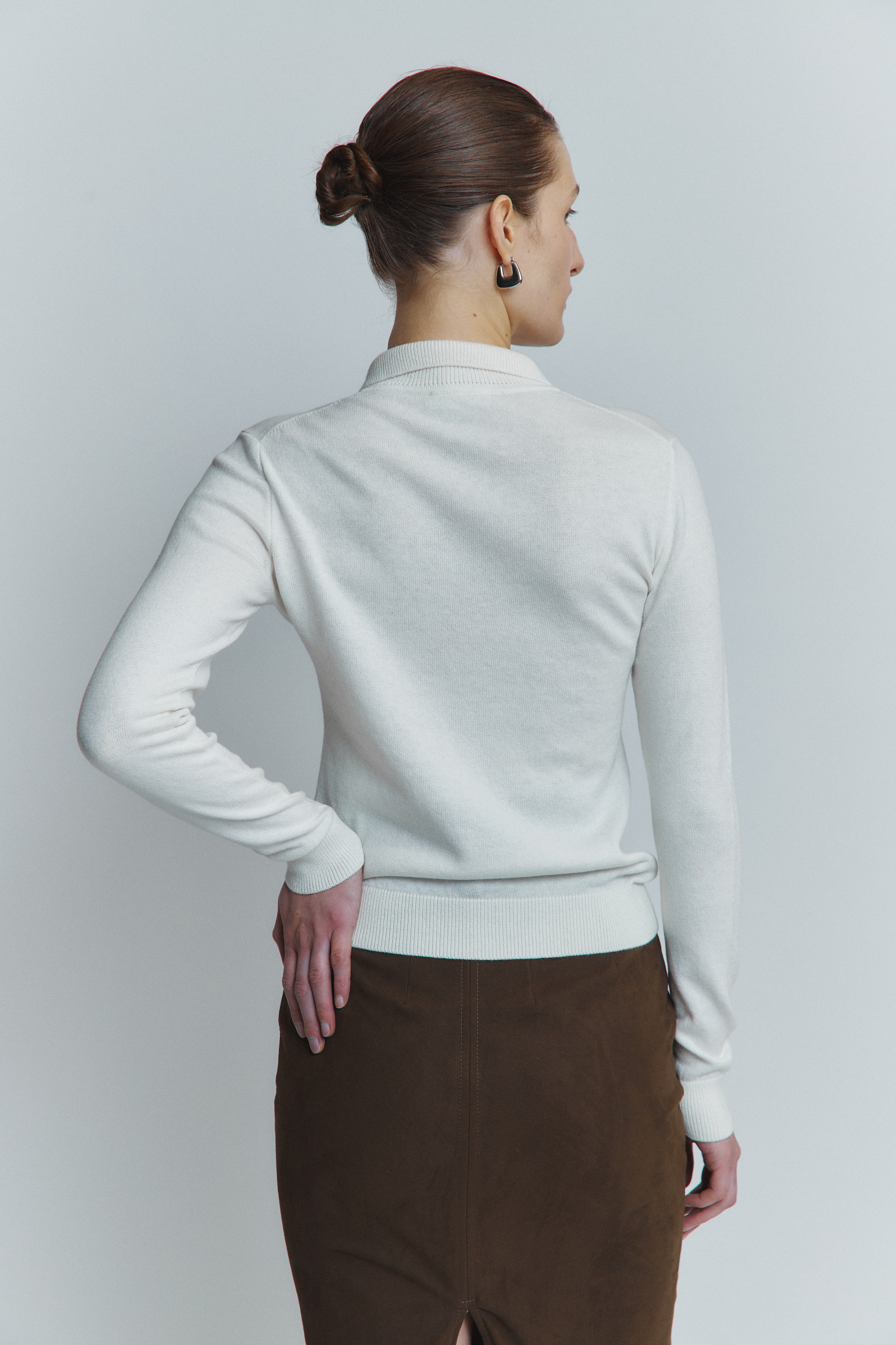 Продуманий крій робить жіноче поло молочне ідеальним для будь-якого типу фігури. Акуратний комір, лаконічна планка та довгі рукави додають образу вишуканості, не перевантажуючи його зайвими деталями. Молочний колір — це нейтральна класика, яка поєднується з теплими та холодними відтінками, дозволяючи створювати десятки стильних комбінацій.