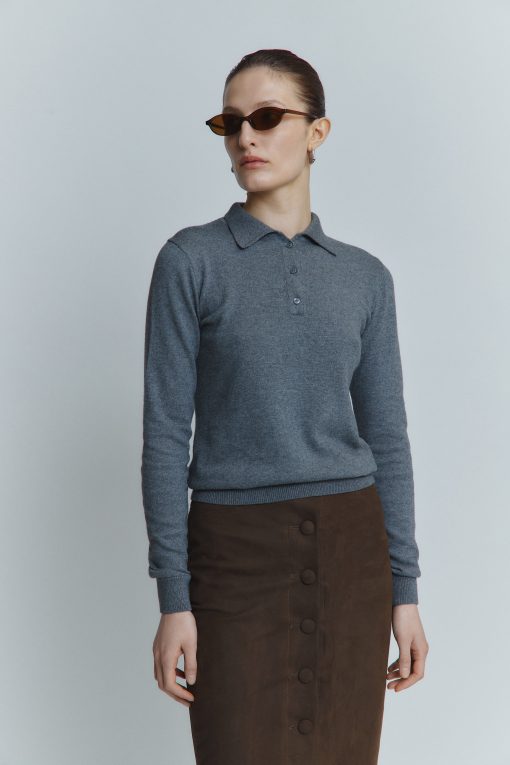 Комірець класичного крою додає виробу елегантності та створює вишукану лінію горловини. Завдяки стриманому відтінку сірого меланжу сіре жіноче поло легко комбінується з різними кольорами — від базових до насичених акцентних тонів.